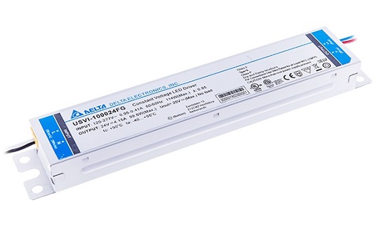 Constant voltage design. Universal input voltage from 120-277Vac. Up to 90% efficiency for 100W and 80W. Wide operating temperature range -40°C to +55°C. Dry and Damp location rated. Particular in refrigeration display lighting application. Safety certificated for household and refrigerator appliances. Suitable for Class I and Class II systems.